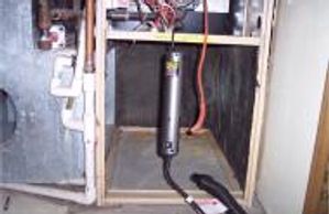 The secondary heat exchanger, in high efficient furnaces, are a very important component to have cleaned. In most cases, this part looks much like a small radiator (some have a baffle style exchanger which looks much like dishes setting in a dishwasher) and 100% of the air blown from the fan must travel through it during both the heating & cooling seasons. Plugged or secondary heat exchangers that are starting to plug "will reduce air flow" in your home/business. Many times customers will comment on how much more air is coming out of their vents/ducts (or how a room now cools/heats so much better) after we've completed the duct cleaning and the cleaning of the secondary heat exchanger. Not all systems need this process, but many will. Many times by looking at the fan after an air washing, we can get a pretty good idea of what the secondary heat exchanger looks like. Good news for the customer is, we can handle the process for you at a nominal fee. Just one more reason for calling Ultimate Duct Cleaning today!